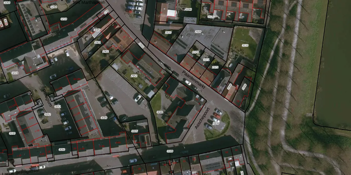Het perceel waarop Paardenmarkt 24 staat heeft een oppervlakte van 770 m². Dit is een groot perceel. De perceeloppervlakte wordt geregistreerd door het Kadaster. Gedetailleerde informatie over de maten van dit perceel kunt u vinden in het rapport Kadastrale kaart met maatvoering van Paardenmarkt 24.