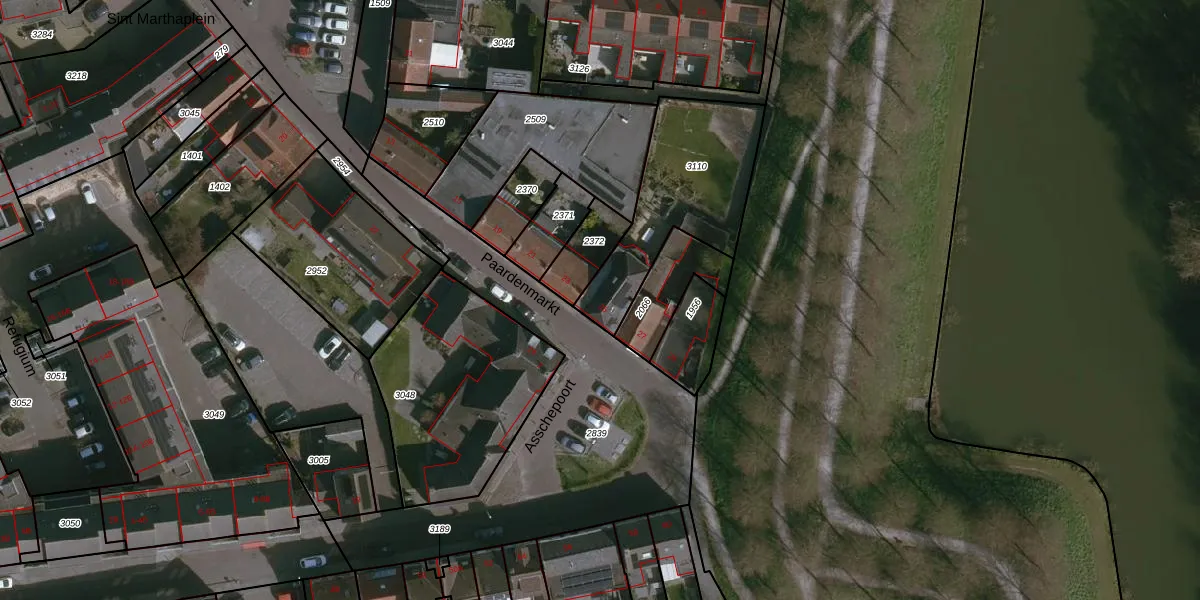 Het perceel waarop Paardenmarkt 25 staat heeft een oppervlakte van 550 m². Dit is een groot perceel. De perceeloppervlakte wordt geregistreerd door het Kadaster. Gedetailleerde informatie over de maten van dit perceel kunt u vinden in het rapport Kadastrale kaart met maatvoering van Paardenmarkt 25.