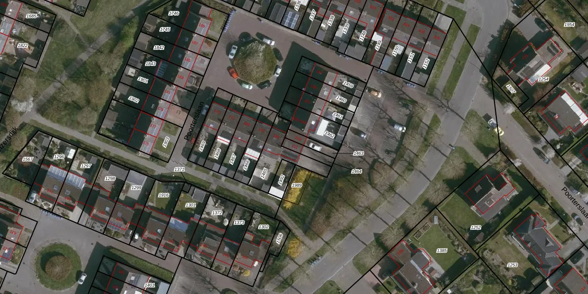 Het perceel waarop Poorterslaan 151 staat heeft een oppervlakte van 57 m². Dit is een klein perceel. De perceeloppervlakte wordt geregistreerd door het Kadaster. Gedetailleerde informatie over de maten van dit perceel kunt u vinden in het rapport Kadastrale kaart met maatvoering van Poorterslaan 151.