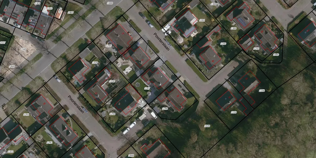 Het perceel waarop Poorterslaan 78 staat heeft een oppervlakte van 434 m². Dit is een groot perceel. De perceeloppervlakte wordt geregistreerd door het Kadaster. Gedetailleerde informatie over de maten van dit perceel kunt u vinden in het rapport Kadastrale kaart met maatvoering van Poorterslaan 78.