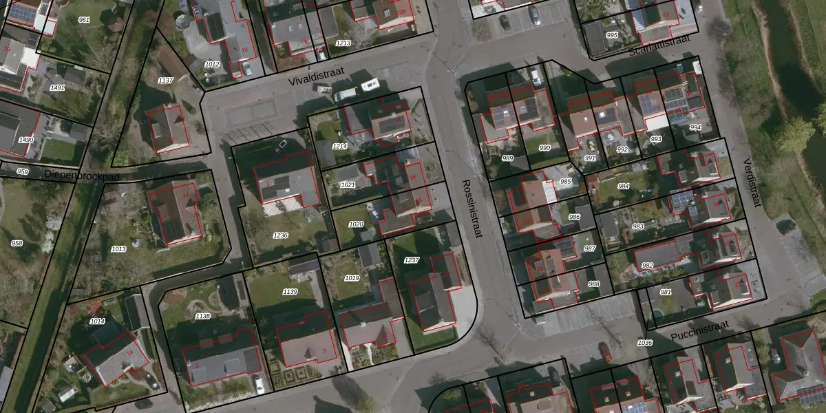 Het perceel waarop Rossinistraat 18 staat heeft een oppervlakte van 284 m². Dit is een middelgroot perceel. De perceeloppervlakte wordt geregistreerd door het Kadaster. Gedetailleerde informatie over de maten van dit perceel kunt u vinden in het rapport Kadastrale kaart met maatvoering van Rossinistraat 18.