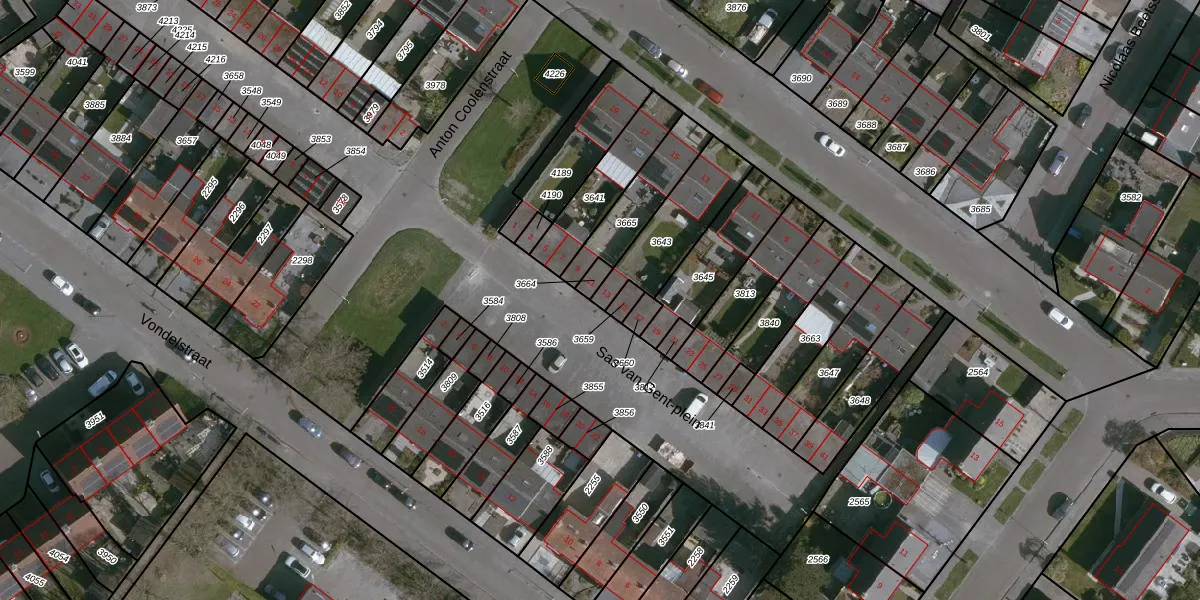 Het perceel waarop Sas van Gent-plein 13 staat heeft een oppervlakte van 255 m². Dit is een middelgroot perceel. De perceeloppervlakte wordt geregistreerd door het Kadaster. Gedetailleerde informatie over de maten van dit perceel kunt u vinden in het rapport Kadastrale kaart met maatvoering van Sas van Gent-plein 13.