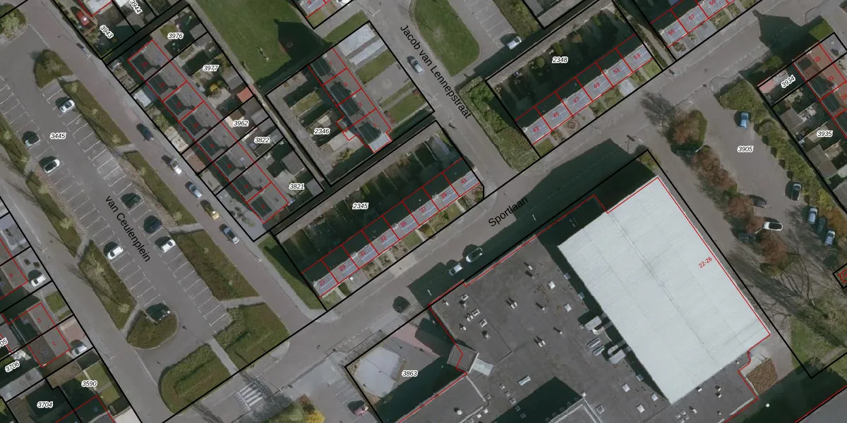 Sportlaan 37 is gelegen op kadastraal perceel HUL00F2345. Deze kadastrale aanduiding is uniek en wordt gebruikt door het Kadaster om eigendomsrechten en andere zakelijke rechten vast te leggen. Het perceel maakt onderdeel uit van de kadastrale gemeente Hulst.