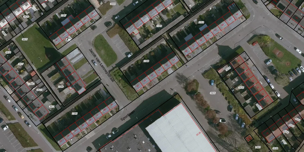 Het perceel waarop Sportlaan 47 staat heeft een oppervlakte van 827 m². Dit is een groot perceel. De perceeloppervlakte wordt geregistreerd door het Kadaster. Gedetailleerde informatie over de maten van dit perceel kunt u vinden in het rapport Kadastrale kaart met maatvoering van Sportlaan 47.