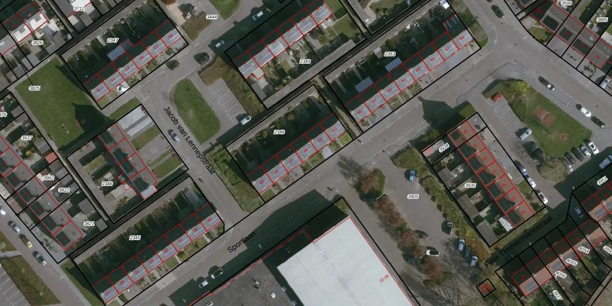 Sportlaan 49 is gelegen op kadastraal perceel HUL00F2348. Deze kadastrale aanduiding is uniek en wordt gebruikt door het Kadaster om eigendomsrechten en andere zakelijke rechten vast te leggen. Het perceel maakt onderdeel uit van de kadastrale gemeente Hulst.