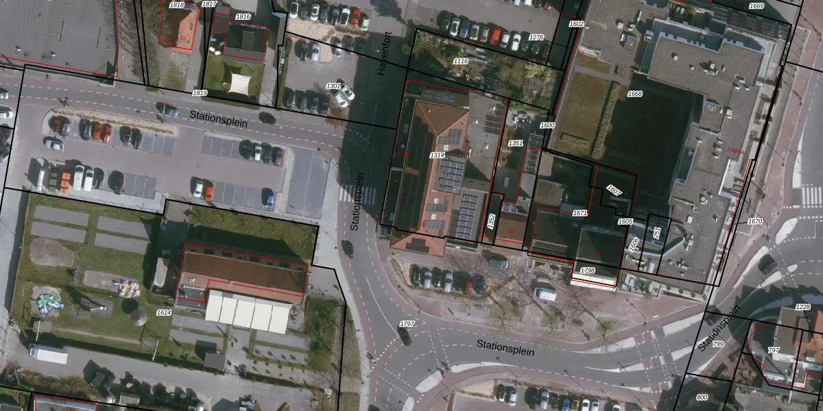 Het perceel waarop Stationsplein 18 staat heeft een oppervlakte van 955 m². Dit is een groot perceel. De perceeloppervlakte wordt geregistreerd door het Kadaster. Gedetailleerde informatie over de maten van dit perceel kunt u vinden in het rapport Kadastrale kaart met maatvoering van Stationsplein 18.