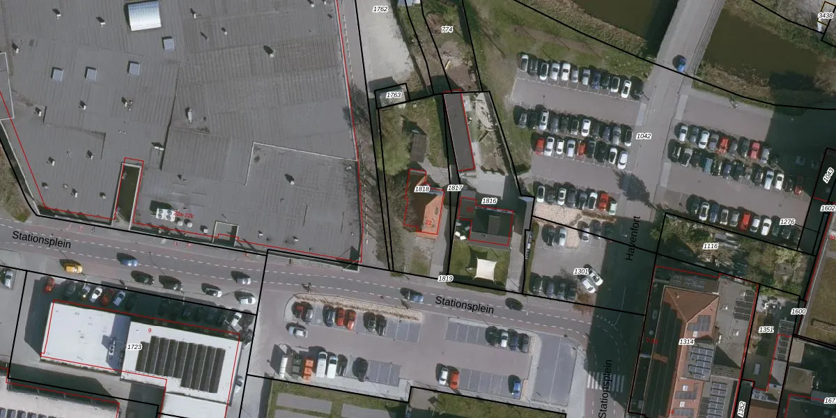 Het perceel waarop Stationsplein 22 staat heeft een oppervlakte van 640 m². Dit is een groot perceel. De perceeloppervlakte wordt geregistreerd door het Kadaster. Gedetailleerde informatie over de maten van dit perceel kunt u vinden in het rapport Kadastrale kaart met maatvoering van Stationsplein 22.
