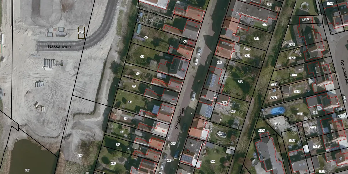 Gebruik de zoekbalk of klik op een perceel voor informatie over de adressen binnen dit perceel.