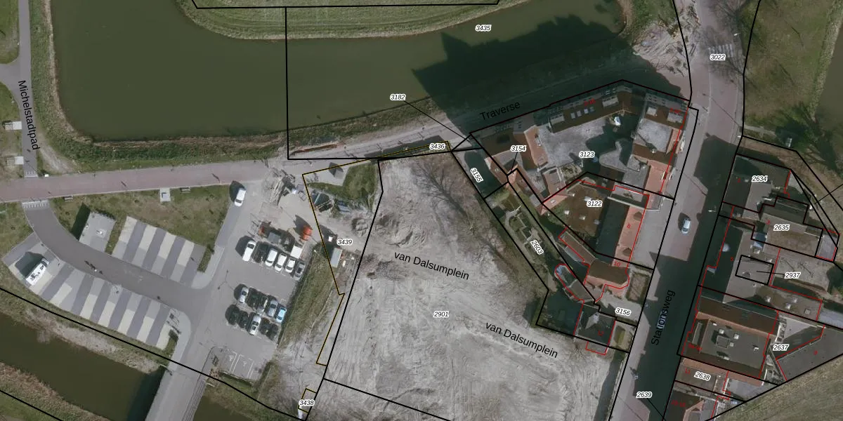 Het perceel waarop Traverse 44 staat heeft een oppervlakte van 2960 m². Dit is een zeer groot perceel. De perceeloppervlakte wordt geregistreerd door het Kadaster. Gedetailleerde informatie over de maten van dit perceel kunt u vinden in het rapport Kadastrale kaart met maatvoering van Traverse 44.
