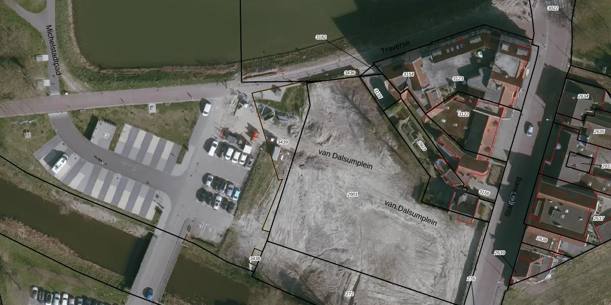 Het perceel waarop Traverse 62 staat heeft een oppervlakte van 2960 m². Dit is een zeer groot perceel. De perceeloppervlakte wordt geregistreerd door het Kadaster. Gedetailleerde informatie over de maten van dit perceel kunt u vinden in het rapport Kadastrale kaart met maatvoering van Traverse 62.