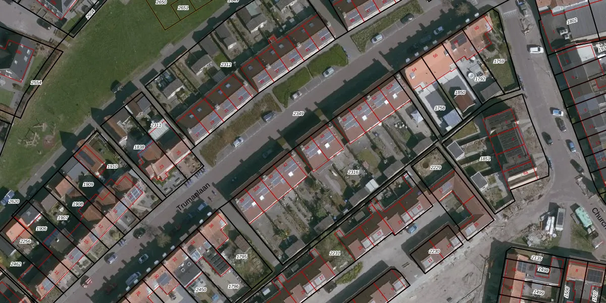 Trumanlaan 44 is gelegen op kadastraal perceel HUL00B2316. Deze kadastrale aanduiding is uniek en wordt gebruikt door het Kadaster om eigendomsrechten en andere zakelijke rechten vast te leggen. Het perceel maakt onderdeel uit van de kadastrale gemeente Hulst.