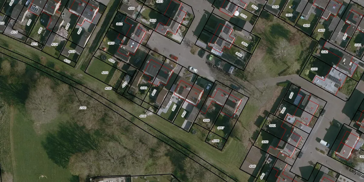 Het perceel waarop van Ossstraat 14 staat heeft een oppervlakte van 296 m². Dit is een middelgroot perceel. De perceeloppervlakte wordt geregistreerd door het Kadaster. Gedetailleerde informatie over de maten van dit perceel kunt u vinden in het rapport Kadastrale kaart met maatvoering van van Ossstraat 14.