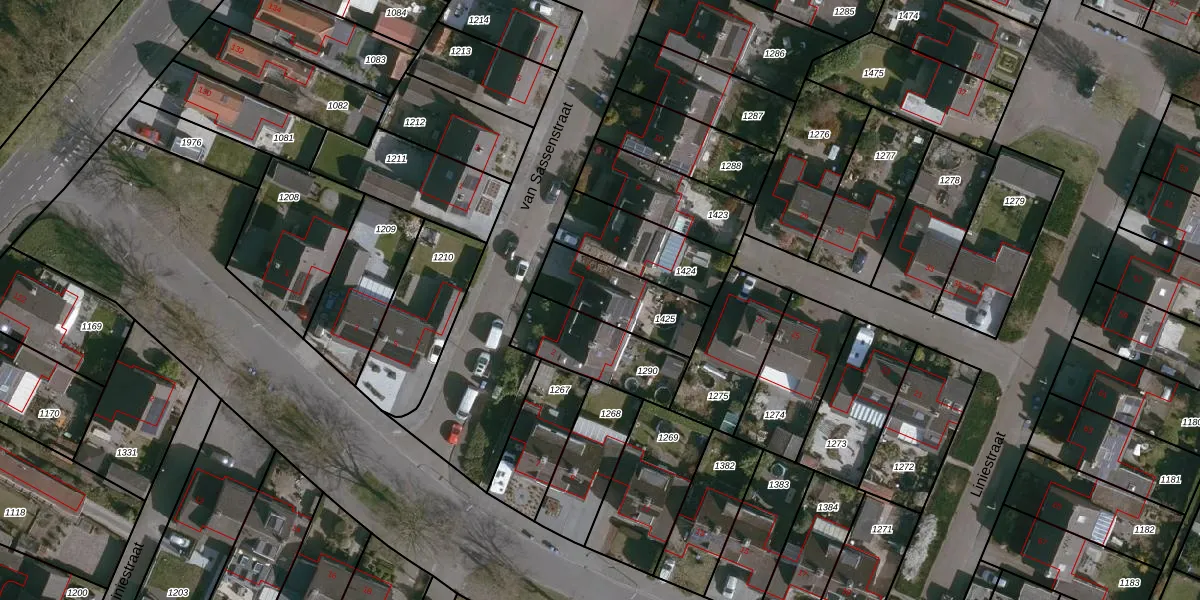 Het perceel waarop van Sassenstraat 4 staat heeft een oppervlakte van 263 m². Dit is een middelgroot perceel. De perceeloppervlakte wordt geregistreerd door het Kadaster. Gedetailleerde informatie over de maten van dit perceel kunt u vinden in het rapport Kadastrale kaart met maatvoering van van Sassenstraat 4.