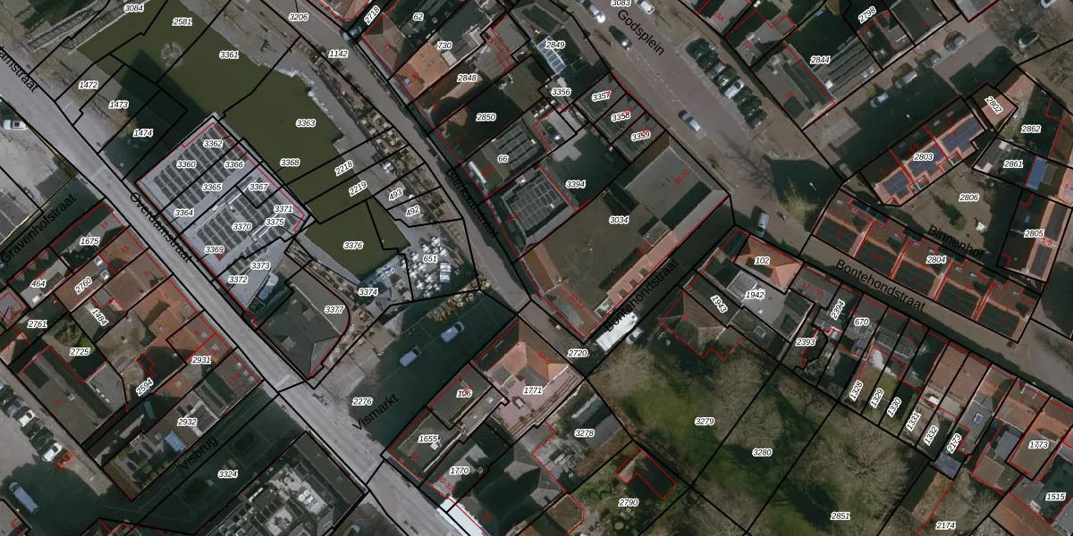 Het perceel waarop Vismarkt 12 staat heeft een oppervlakte van 717 m². Dit is een groot perceel. De perceeloppervlakte wordt geregistreerd door het Kadaster. Gedetailleerde informatie over de maten van dit perceel kunt u vinden in het rapport Kadastrale kaart met maatvoering van Vismarkt 12.