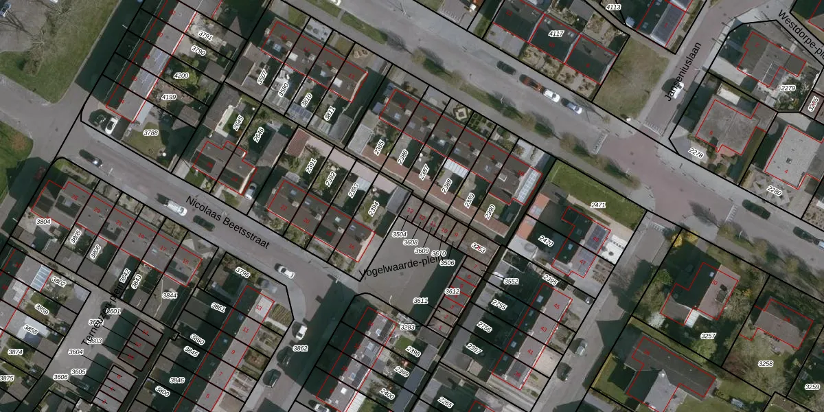 Het perceel waarop Vogelwaarde-plein 13 staat heeft een oppervlakte van 20 m². Dit is een klein perceel. De perceeloppervlakte wordt geregistreerd door het Kadaster. Gedetailleerde informatie over de maten van dit perceel kunt u vinden in het rapport Kadastrale kaart met maatvoering van Vogelwaarde-plein 13.