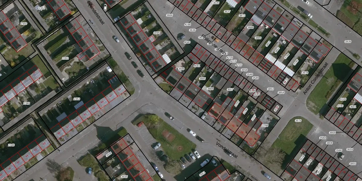 Het perceel waarop Vondelstraat 36 staat heeft een oppervlakte van 175 m². Dit is een middelgroot perceel. De perceeloppervlakte wordt geregistreerd door het Kadaster. Gedetailleerde informatie over de maten van dit perceel kunt u vinden in het rapport Kadastrale kaart met maatvoering van Vondelstraat 36.