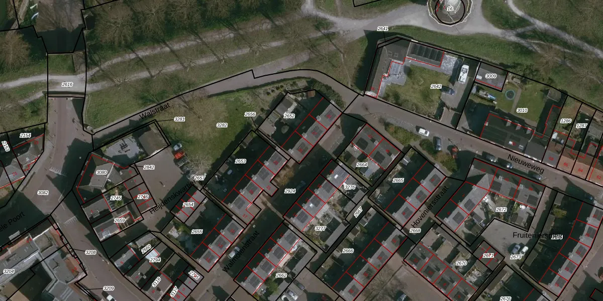 Het perceel waarop Walmolenstraat 25 staat heeft een oppervlakte van 385 m². Dit is een groot perceel. De perceeloppervlakte wordt geregistreerd door het Kadaster. Gedetailleerde informatie over de maten van dit perceel kunt u vinden in het rapport Kadastrale kaart met maatvoering van Walmolenstraat 25.