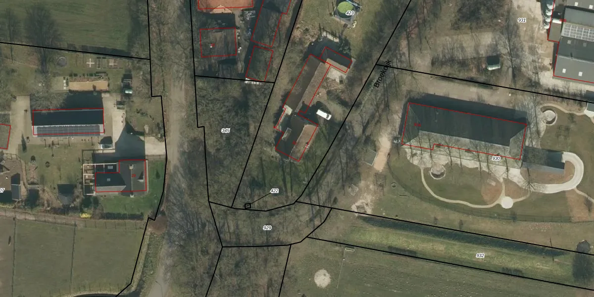 Het perceel waarop Broekdijk 30 staat heeft een oppervlakte van 3247 m². Dit is een zeer groot perceel. De perceeloppervlakte wordt geregistreerd door het Kadaster. Gedetailleerde informatie over de maten van dit perceel kunt u vinden in het rapport Kadastrale kaart met maatvoering van Broekdijk 30.