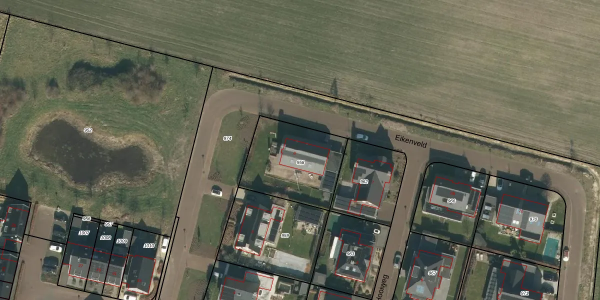 Eikenveld 8 is gelegen op kadastraal perceel GZE00N958. Deze kadastrale aanduiding is uniek en wordt gebruikt door het Kadaster om eigendomsrechten en andere zakelijke rechten vast te leggen. Het perceel maakt onderdeel uit van de kadastrale gemeente Gilze en Rijen.