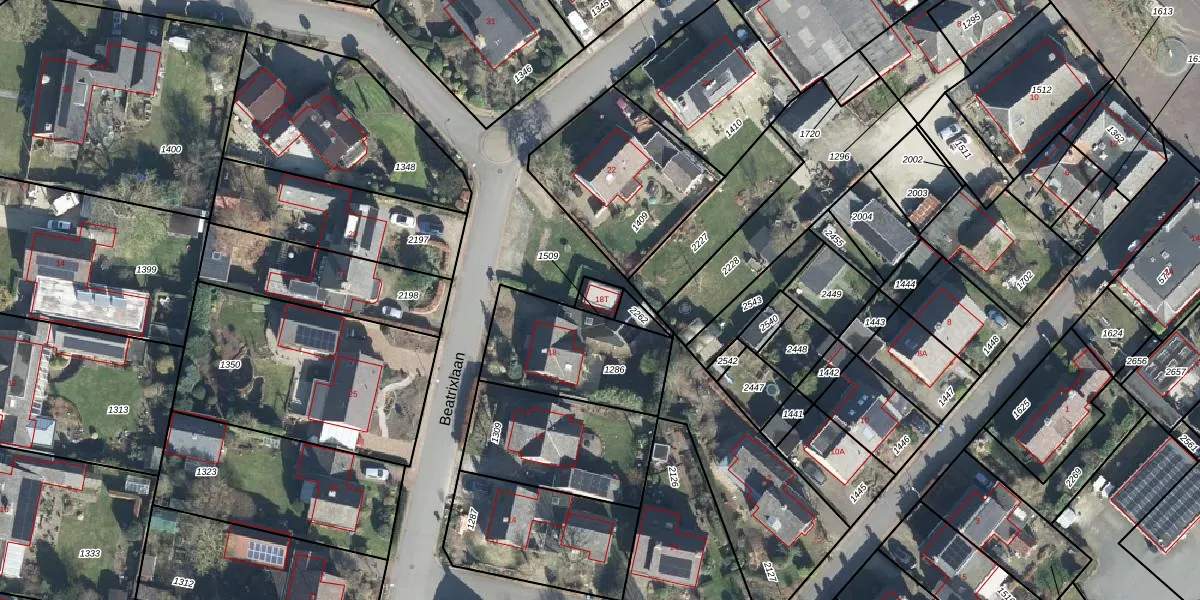 Het perceel waarop Beatrixlaan 18-T staat heeft een oppervlakte van 38 m². Dit is een klein perceel. De perceeloppervlakte wordt geregistreerd door het Kadaster. Gedetailleerde informatie over de maten van dit perceel kunt u vinden in het rapport Kadastrale kaart met maatvoering van Beatrixlaan 18-T.