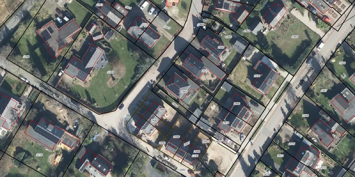 Gebruik de zoekbalk of klik op een perceel voor informatie over de adressen binnen dit perceel.