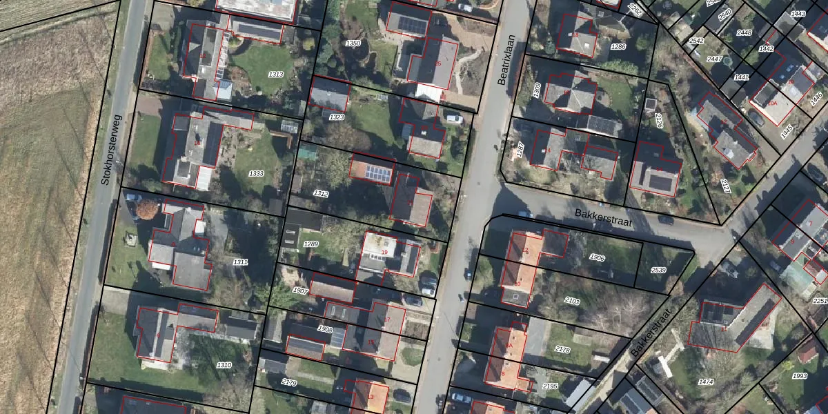 Het perceel waarop Beatrixlaan 21 staat heeft een oppervlakte van 640 m². Dit is een groot perceel. De perceeloppervlakte wordt geregistreerd door het Kadaster. Gedetailleerde informatie over de maten van dit perceel kunt u vinden in het rapport Kadastrale kaart met maatvoering van Beatrixlaan 21.