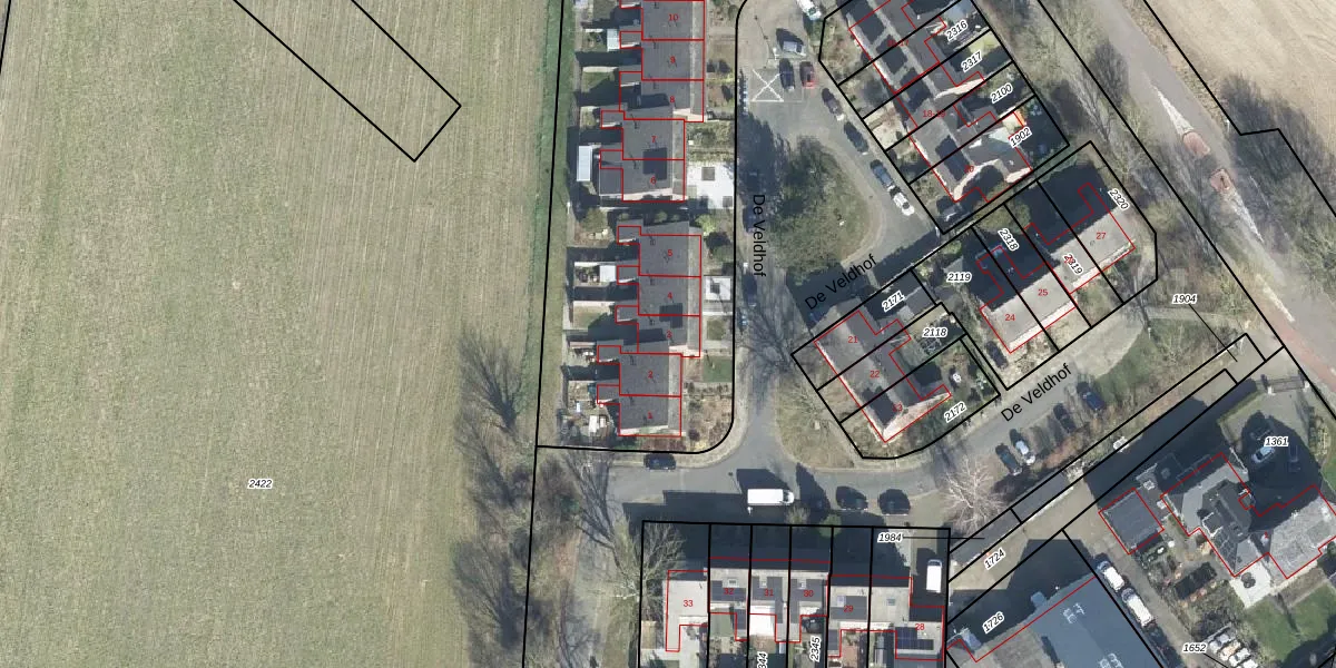 Het perceel waarop De Veldhof 3 staat heeft een oppervlakte van 2950 m². Dit is een zeer groot perceel. De perceeloppervlakte wordt geregistreerd door het Kadaster. Gedetailleerde informatie over de maten van dit perceel kunt u vinden in het rapport Kadastrale kaart met maatvoering van De Veldhof 3.