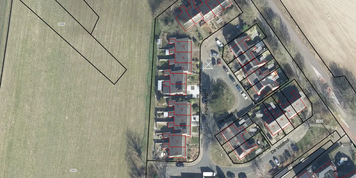 Het perceel waarop De Veldhof 6 staat heeft een oppervlakte van 2950 m². Dit is een zeer groot perceel. De perceeloppervlakte wordt geregistreerd door het Kadaster. Gedetailleerde informatie over de maten van dit perceel kunt u vinden in het rapport Kadastrale kaart met maatvoering van De Veldhof 6.