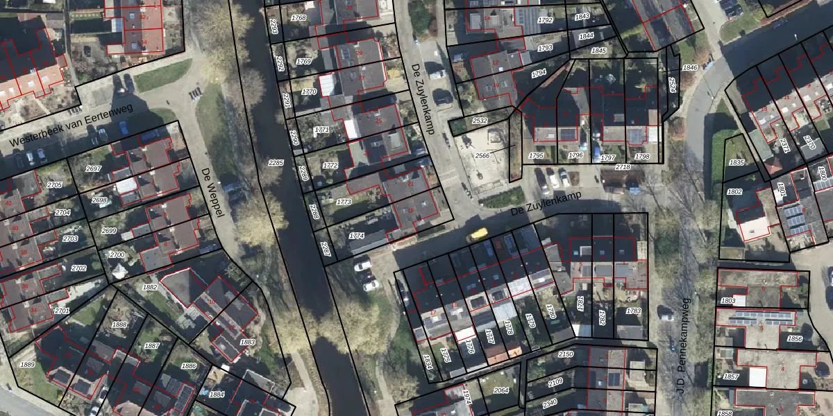 Het perceel waarop De Zuylenkamp 19 staat heeft een oppervlakte van 254 m². Dit is een middelgroot perceel. De perceeloppervlakte wordt geregistreerd door het Kadaster. Gedetailleerde informatie over de maten van dit perceel kunt u vinden in het rapport Kadastrale kaart met maatvoering van De Zuylenkamp 19.