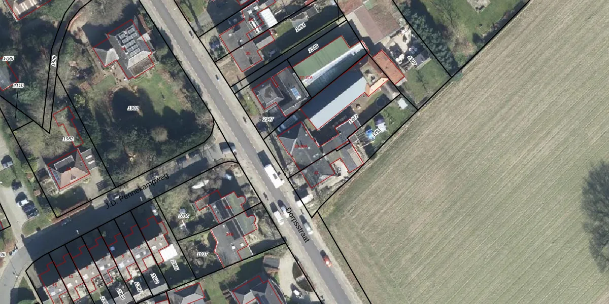 Het perceel waarop Dorpsstraat 39-A staat heeft een oppervlakte van 780 m². Dit is een groot perceel. De perceeloppervlakte wordt geregistreerd door het Kadaster. Gedetailleerde informatie over de maten van dit perceel kunt u vinden in het rapport Kadastrale kaart met maatvoering van Dorpsstraat 39-A.