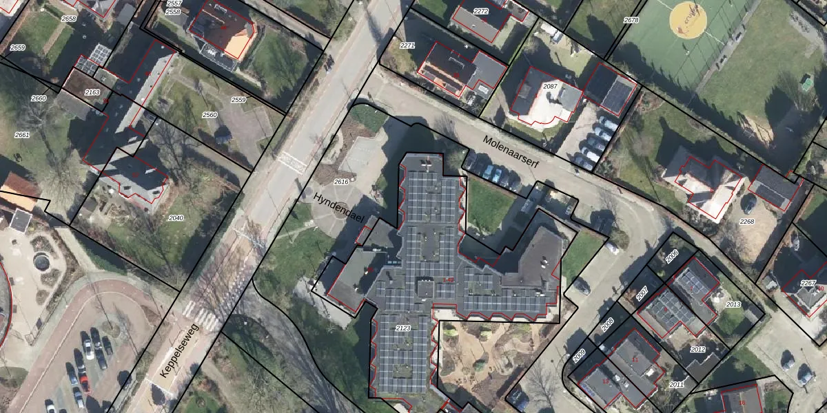 Het perceel waarop Hyndendael 13 staat heeft een oppervlakte van 3170 m². Dit is een zeer groot perceel. De perceeloppervlakte wordt geregistreerd door het Kadaster. Gedetailleerde informatie over de maten van dit perceel kunt u vinden in het rapport Kadastrale kaart met maatvoering van Hyndendael 13.