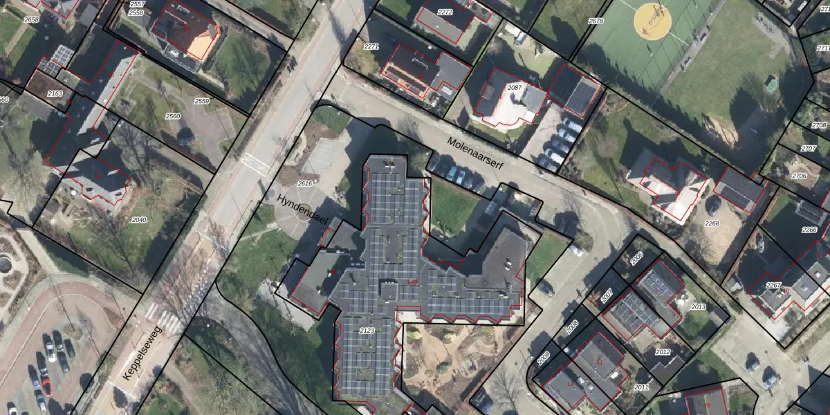 Het perceel waarop Hyndendael 28 staat heeft een oppervlakte van 3170 m². Dit is een zeer groot perceel. De perceeloppervlakte wordt geregistreerd door het Kadaster. Gedetailleerde informatie over de maten van dit perceel kunt u vinden in het rapport Kadastrale kaart met maatvoering van Hyndendael 28.