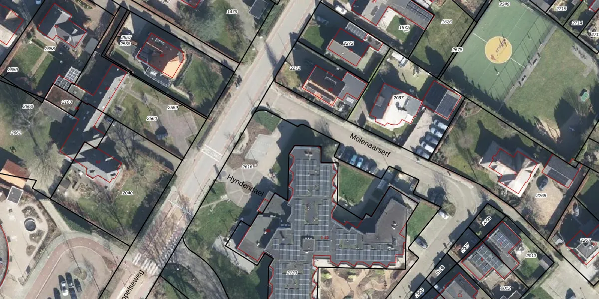 Het perceel waarop Hyndendael 30 staat heeft een oppervlakte van 3170 m². Dit is een zeer groot perceel. De perceeloppervlakte wordt geregistreerd door het Kadaster. Gedetailleerde informatie over de maten van dit perceel kunt u vinden in het rapport Kadastrale kaart met maatvoering van Hyndendael 30.