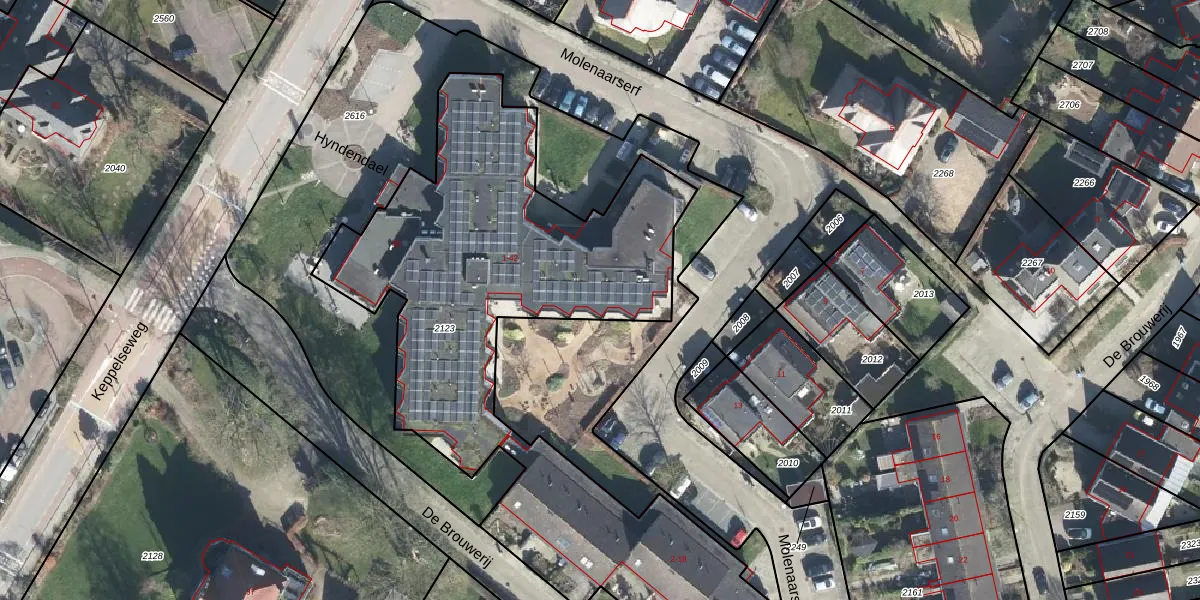 Het perceel waarop Hyndendael 37 staat heeft een oppervlakte van 3170 m². Dit is een zeer groot perceel. De perceeloppervlakte wordt geregistreerd door het Kadaster. Gedetailleerde informatie over de maten van dit perceel kunt u vinden in het rapport Kadastrale kaart met maatvoering van Hyndendael 37.