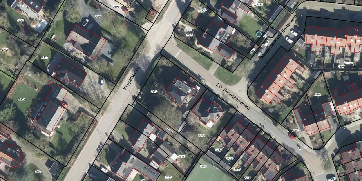Het perceel waarop Keppelseweg 23 staat heeft een oppervlakte van 865 m². Dit is een groot perceel. De perceeloppervlakte wordt geregistreerd door het Kadaster. Gedetailleerde informatie over de maten van dit perceel kunt u vinden in het rapport Kadastrale kaart met maatvoering van Keppelseweg 23.