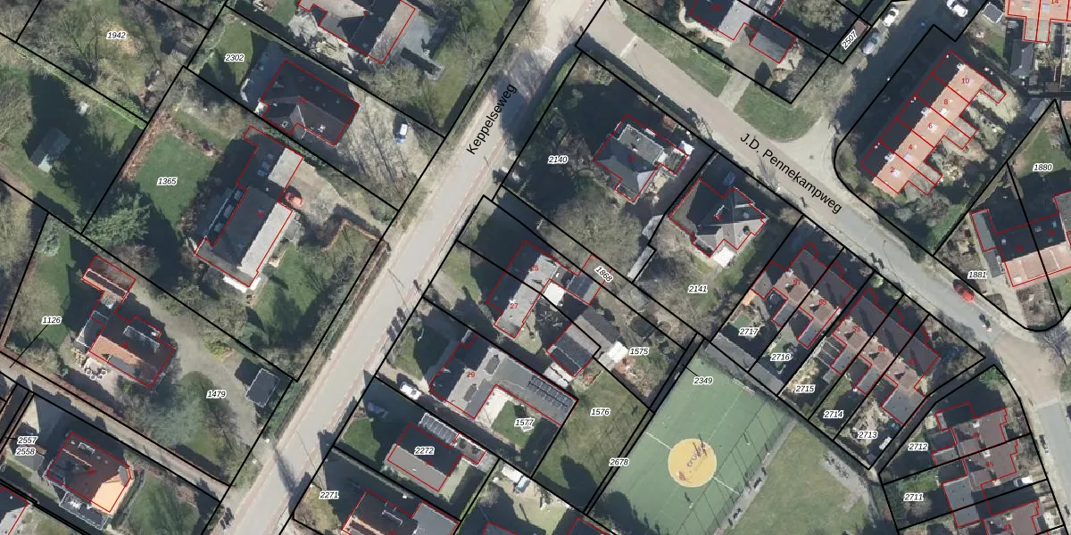 Het perceel waarop Keppelseweg 25 staat heeft een oppervlakte van 475 m². Dit is een groot perceel. De perceeloppervlakte wordt geregistreerd door het Kadaster. Gedetailleerde informatie over de maten van dit perceel kunt u vinden in het rapport Kadastrale kaart met maatvoering van Keppelseweg 25.