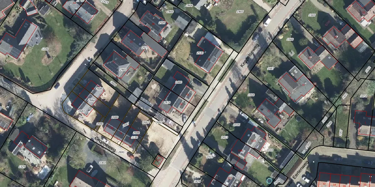 Gebruik de zoekbalk of klik op een perceel voor informatie over de adressen binnen dit perceel.