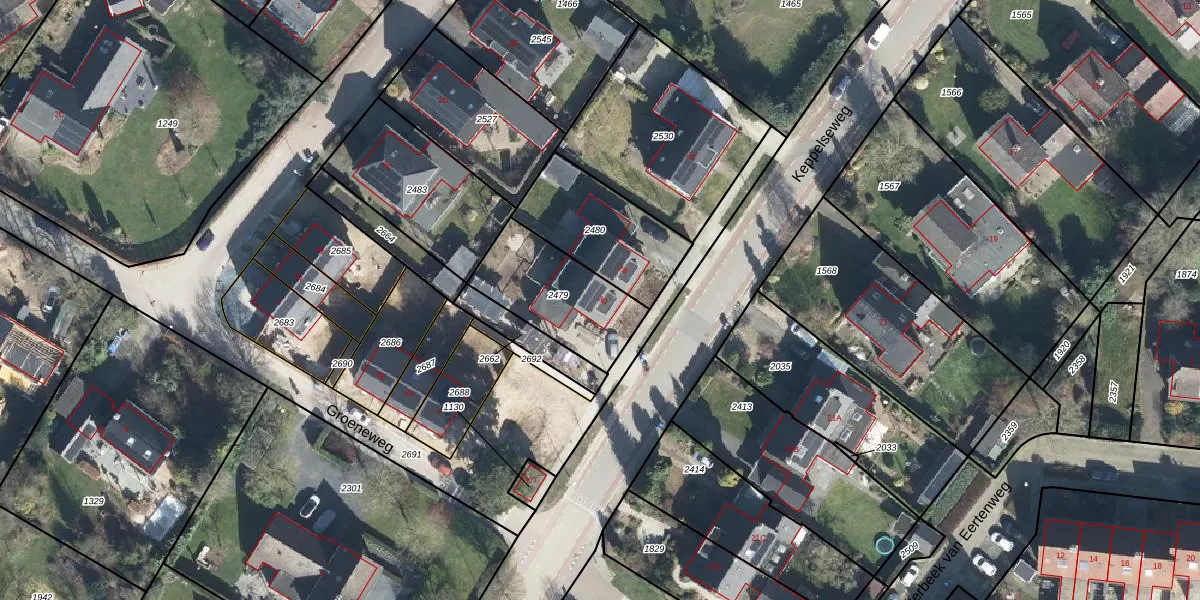 Gebruik de zoekbalk of klik op een perceel voor informatie over de adressen binnen dit perceel.