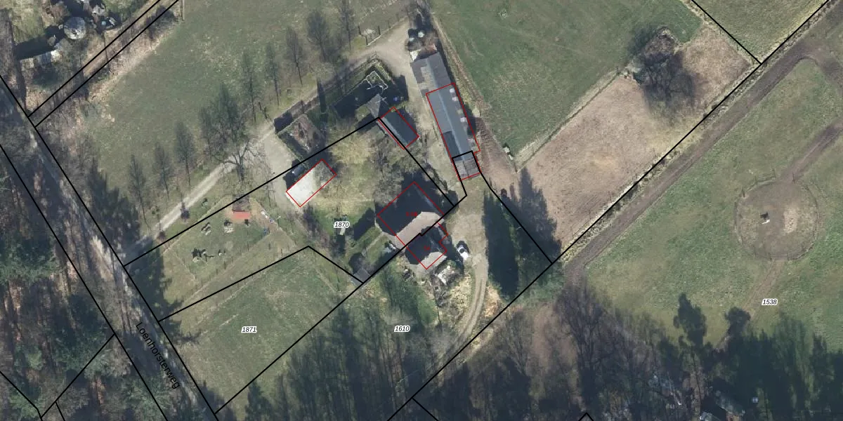 Het perceel waarop Loenhorsterweg 5 staat heeft een oppervlakte van 1615 m². Dit is een zeer groot perceel. De perceeloppervlakte wordt geregistreerd door het Kadaster. Gedetailleerde informatie over de maten van dit perceel kunt u vinden in het rapport Kadastrale kaart met maatvoering van Loenhorsterweg 5.