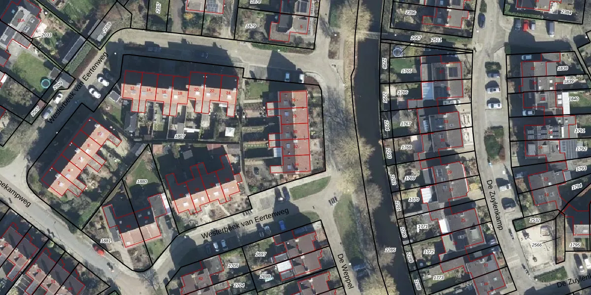Het perceel waarop Westerbeek van Eertenweg 32 staat heeft een oppervlakte van 3815 m². Dit is een zeer groot perceel. De perceeloppervlakte wordt geregistreerd door het Kadaster. Gedetailleerde informatie over de maten van dit perceel kunt u vinden in het rapport Kadastrale kaart met maatvoering van Westerbeek van Eertenweg 32.