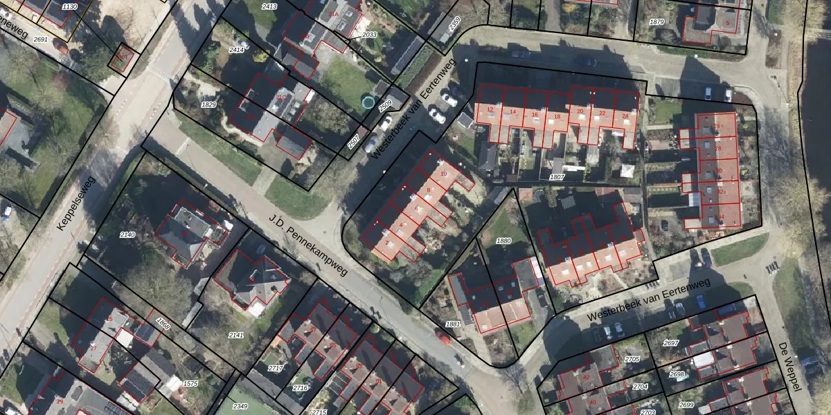 Het perceel waarop Westerbeek van Eertenweg 6 staat heeft een oppervlakte van 3815 m². Dit is een zeer groot perceel. De perceeloppervlakte wordt geregistreerd door het Kadaster. Gedetailleerde informatie over de maten van dit perceel kunt u vinden in het rapport Kadastrale kaart met maatvoering van Westerbeek van Eertenweg 6.