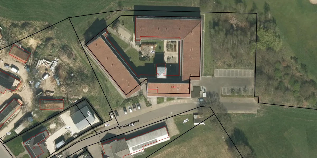 Het perceel waarop Bruggerveld 11 staat heeft een oppervlakte van 2829 m². Dit is een zeer groot perceel. De perceeloppervlakte wordt geregistreerd door het Kadaster. Gedetailleerde informatie over de maten van dit perceel kunt u vinden in het rapport Kadastrale kaart met maatvoering van Bruggerveld 11.