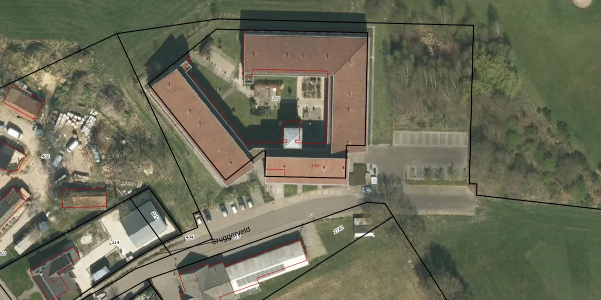 Het perceel waarop Bruggerveld 21 staat heeft een oppervlakte van 2829 m². Dit is een zeer groot perceel. De perceeloppervlakte wordt geregistreerd door het Kadaster. Gedetailleerde informatie over de maten van dit perceel kunt u vinden in het rapport Kadastrale kaart met maatvoering van Bruggerveld 21.