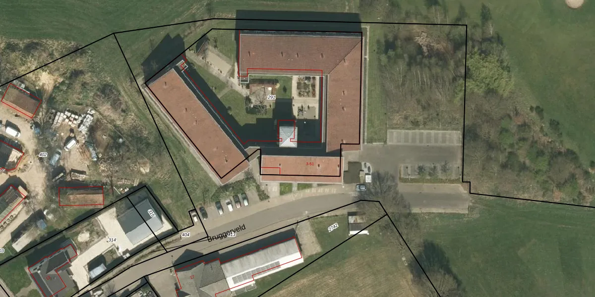 Het perceel waarop Bruggerveld 23 staat heeft een oppervlakte van 2829 m². Dit is een zeer groot perceel. De perceeloppervlakte wordt geregistreerd door het Kadaster. Gedetailleerde informatie over de maten van dit perceel kunt u vinden in het rapport Kadastrale kaart met maatvoering van Bruggerveld 23.