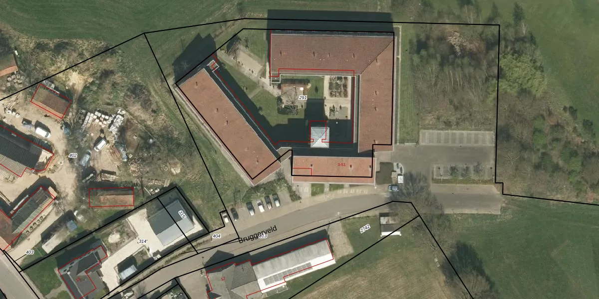 Het perceel waarop Bruggerveld 3 staat heeft een oppervlakte van 2829 m². Dit is een zeer groot perceel. De perceeloppervlakte wordt geregistreerd door het Kadaster. Gedetailleerde informatie over de maten van dit perceel kunt u vinden in het rapport Kadastrale kaart met maatvoering van Bruggerveld 3.
