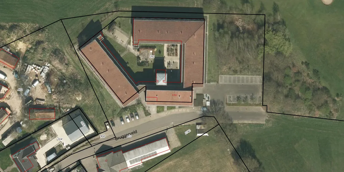 Het perceel waarop Bruggerveld 31 staat heeft een oppervlakte van 2829 m². Dit is een zeer groot perceel. De perceeloppervlakte wordt geregistreerd door het Kadaster. Gedetailleerde informatie over de maten van dit perceel kunt u vinden in het rapport Kadastrale kaart met maatvoering van Bruggerveld 31.