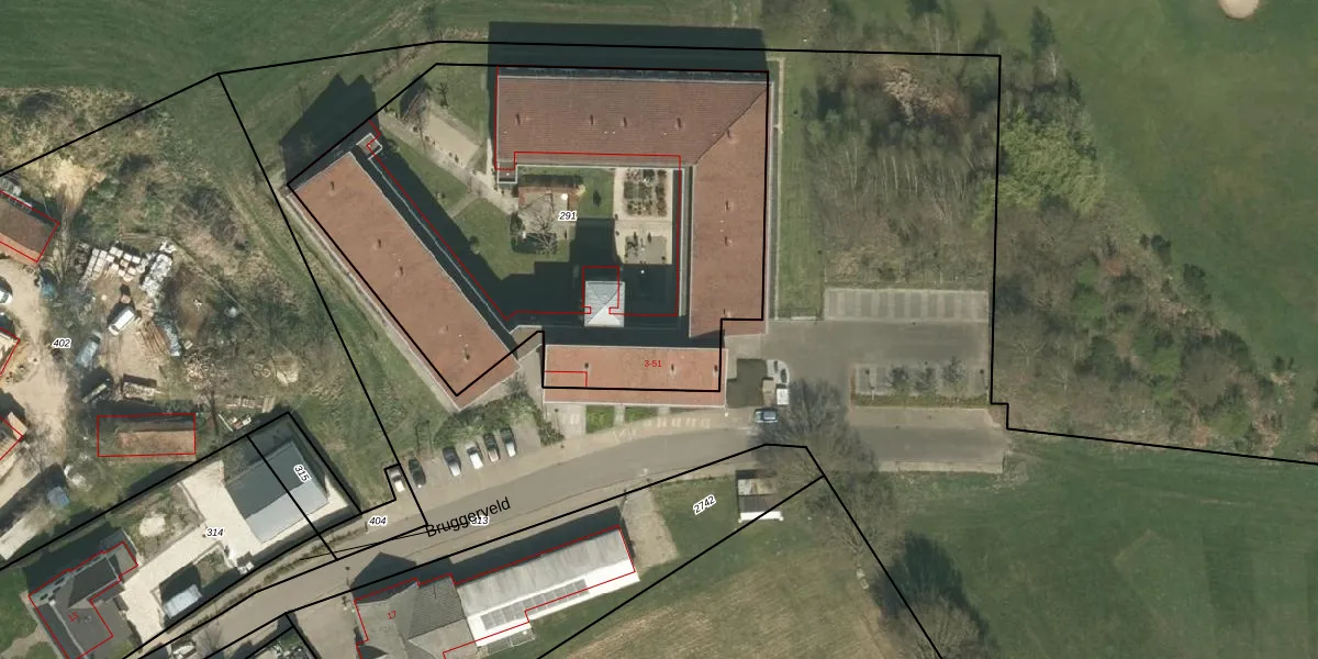 Het perceel waarop Bruggerveld 37 staat heeft een oppervlakte van 2829 m². Dit is een zeer groot perceel. De perceeloppervlakte wordt geregistreerd door het Kadaster. Gedetailleerde informatie over de maten van dit perceel kunt u vinden in het rapport Kadastrale kaart met maatvoering van Bruggerveld 37.