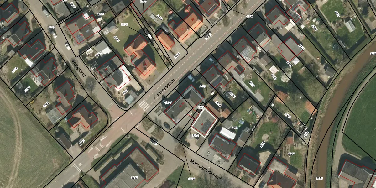 Gebruik de zoekbalk of klik op een perceel voor informatie over de adressen binnen dit perceel.