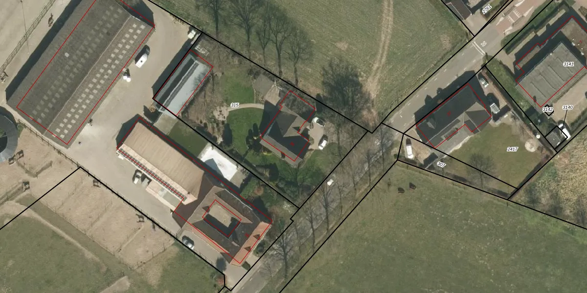 Gebruik de zoekbalk of klik op een perceel voor informatie over de adressen binnen dit perceel.