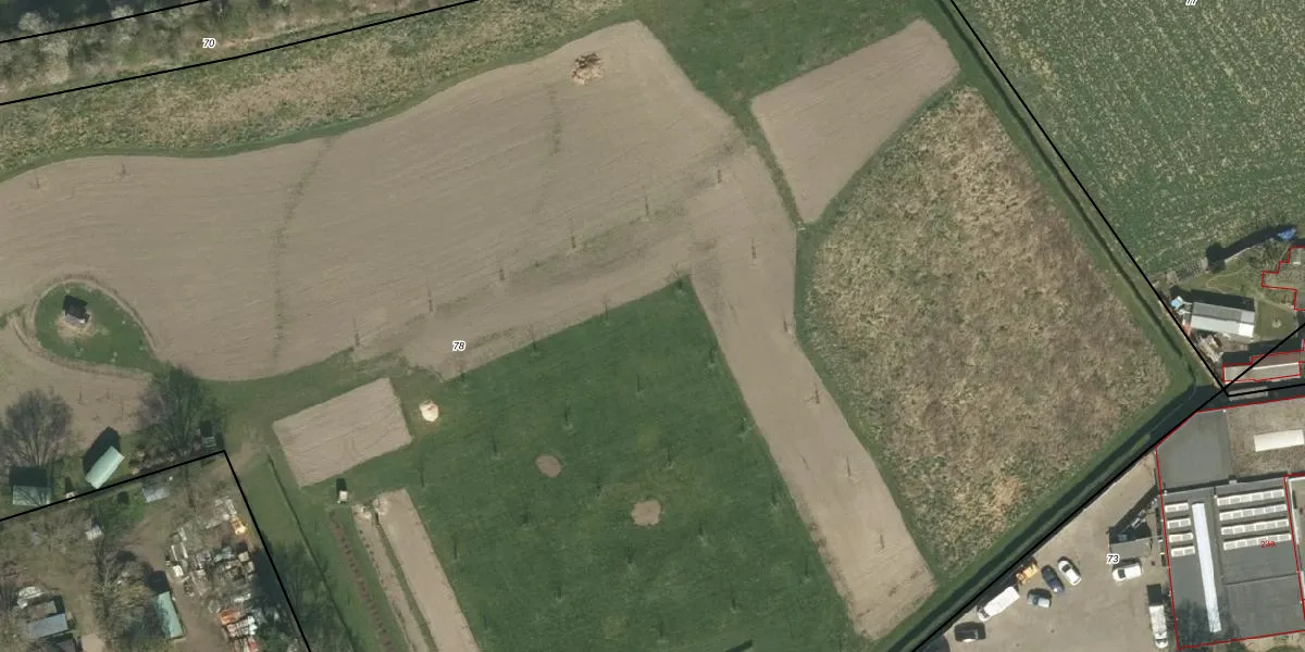 Het perceel waarop het adres ligt is HSL00-M-78. De afkorting 'HSL00' staat voor kadastrale gemeente Hunsel. De oppervlakte van het perceel is 2,1 ha. Dat is groter dan gemiddeld in Hunsel, waar de gemiddelde perceeloppervlakte op 7206,64 m² ligt. Het kleinste perceel in de kadastrale gemeente is 0 m² groot. De grootste perceeloppervlakte is 22,0 ha. Op het perceel liggen in totaal 13 adressen. In de Basisregistratie Kadaster (BRK) werden de grenzen van het perceel geregistreerd op 30-06-2006.